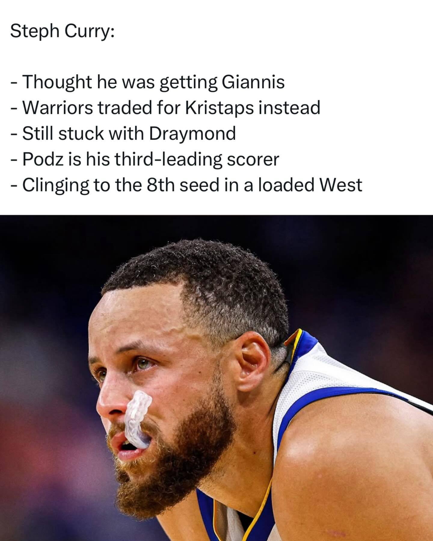 波尔津吉斯一直都不是金州勇士队想要的球员,外界都非常清楚波尔津吉斯是容易遭遇伤病困扰的高个子球员。即便他身高2.18米,能打前锋和中锋两位置,还有一定的三分球投射。可是,进入联盟之后,波尔津吉斯就没有保持健康过。